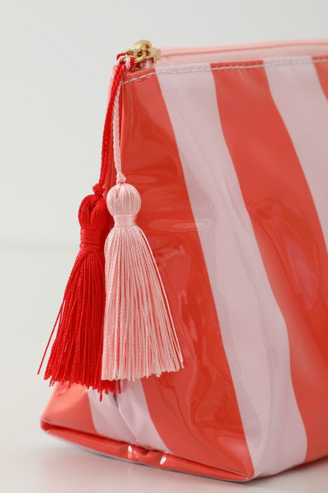 Stripe Cosmetic Makeup Pouch Clutch Bag, This pouch features modern stripe pattern with tassel including Waterproof lining keeps spills and messes under control. Offering large portable essential, foldable, portable, and light weight with zipper closure. With its spacious interior and convenient zipper closure.
