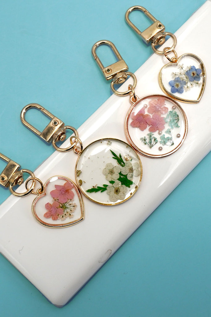 Bag Charm - Pressed Dried Flower Charms, a beautiful and unique bag charm featuring delicate dried flowers. This add class to your bags, purses, or keychains, a stylish accessory for purses, backpacks, or key rings.