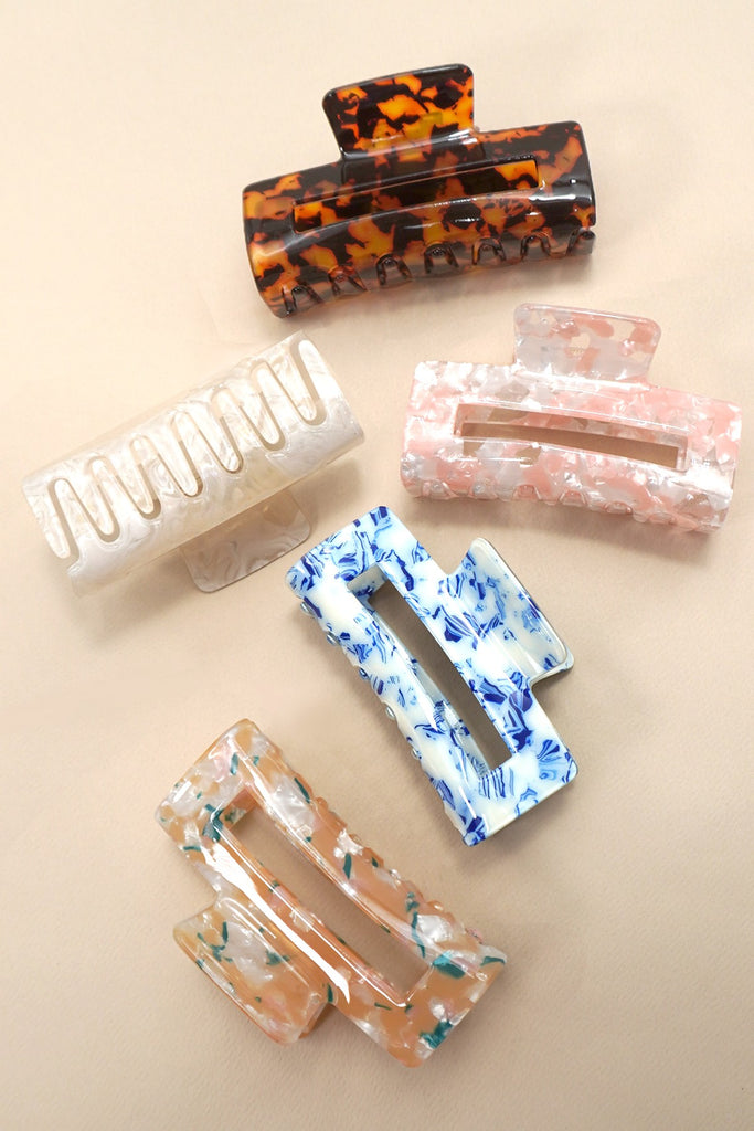 Marbled Acetate Rectangle Hair Claw Clips | 40H1041