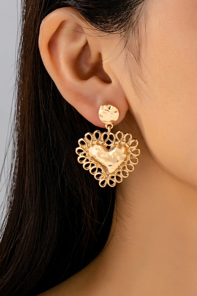 Ornate Hammered Heart Drop Earrings | 80E61656