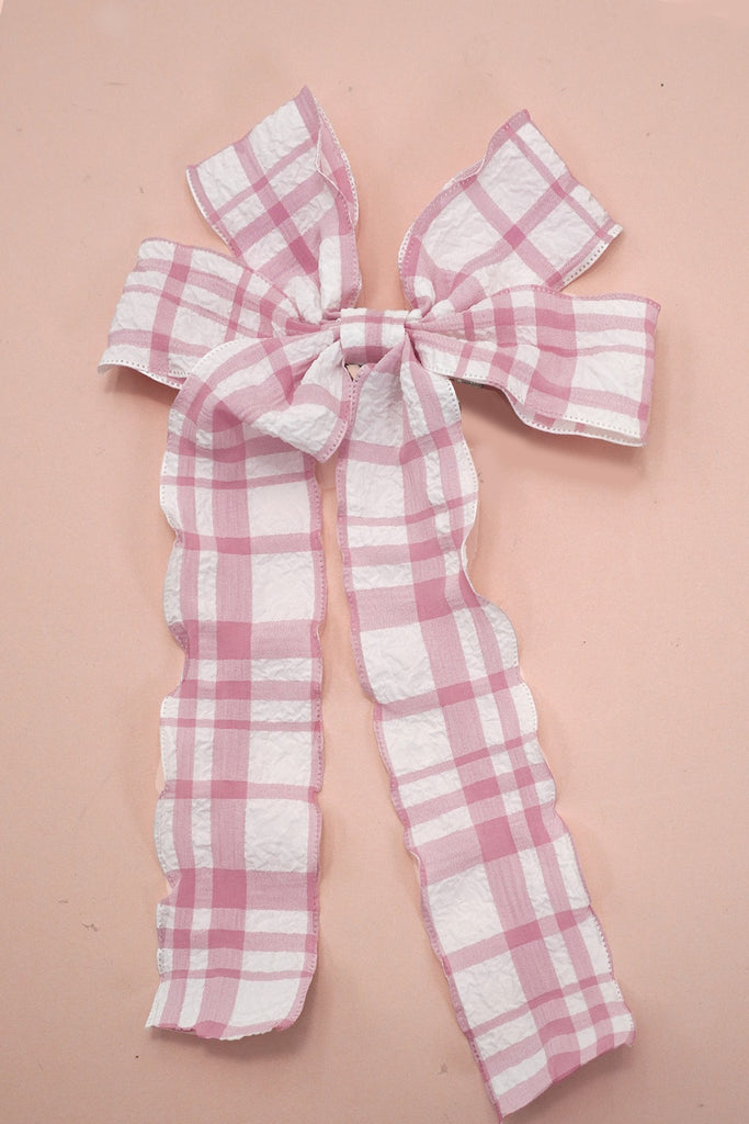 PRETTY TEXTURED CHECKER BOW RIBBON HAIR CLIPS | 40H925