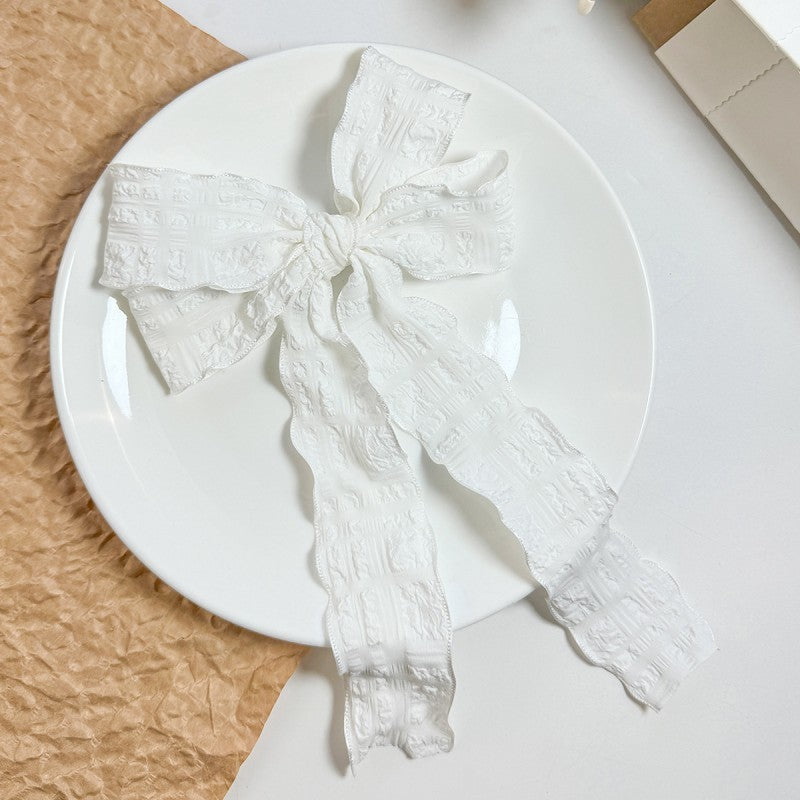 Pretty Textured Checker Design Bow Ribbon Hair Clips, featuring a unique textured feel material with checker pattern or plain white bow, these clips offer a perfect balance of elegance and charm. Ideal for adding a graceful touch to any hairstyle.