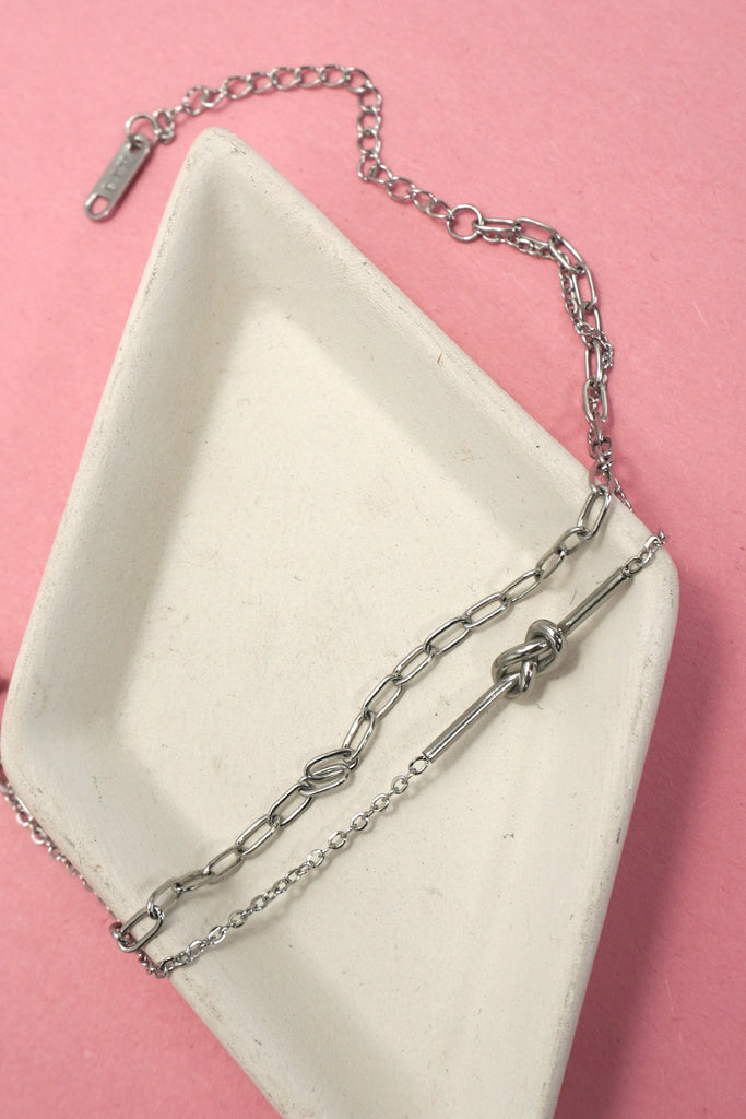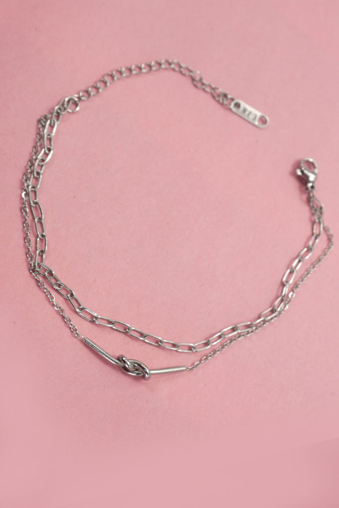 18K Stainless Steel Non-Tarnish Double Layer Knot Bracelet, this chic and modern bracelet features a sleek double-layer design with an elegant knot detail, symbolizing strength and unity. Crafted from high-quality 18K stainless steel, it offers a durable, non-tarnish finish.