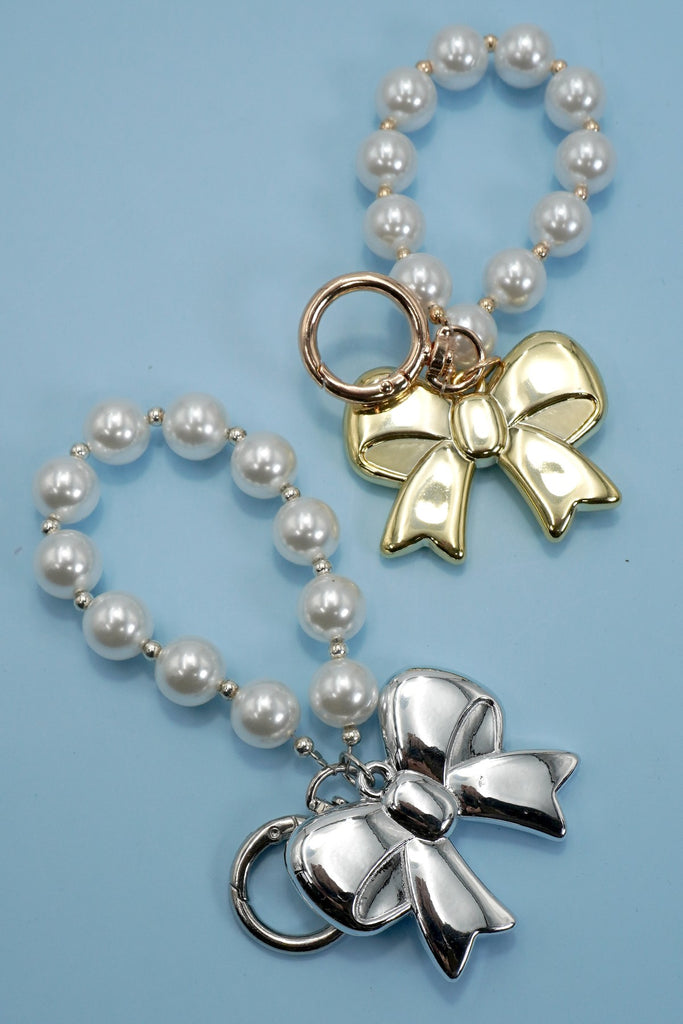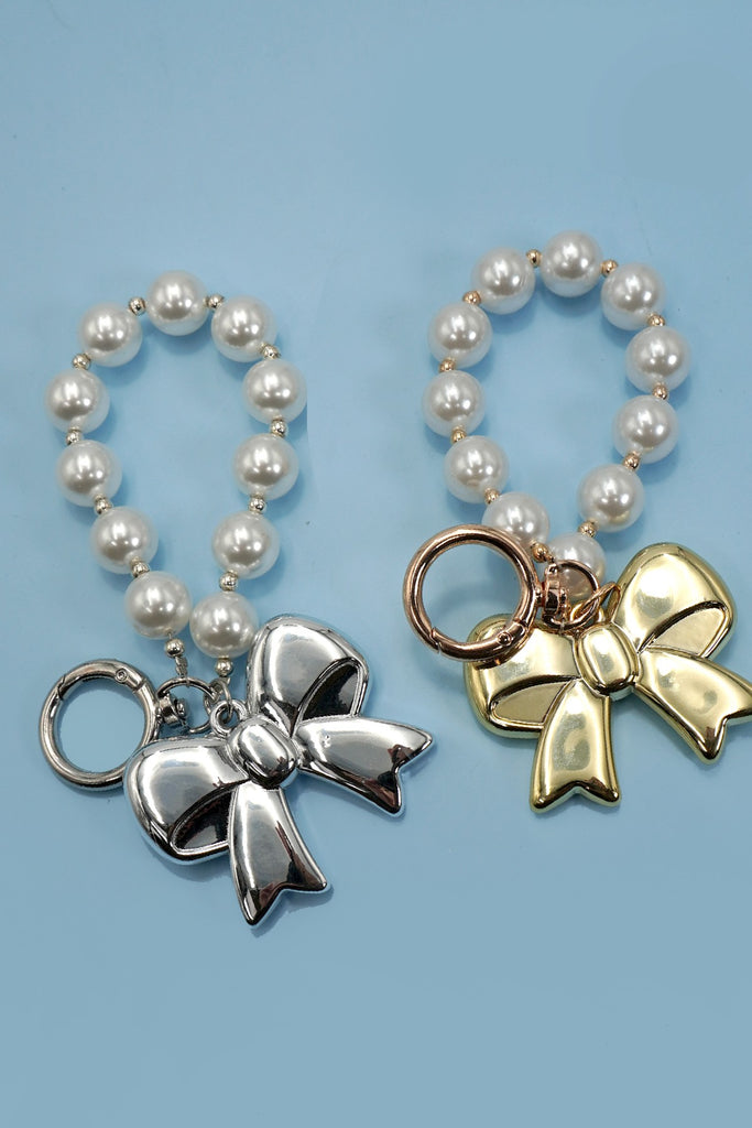 BAG CHARM-PEARL BOW KEYCHAIN BAG CHARM | 40KC146