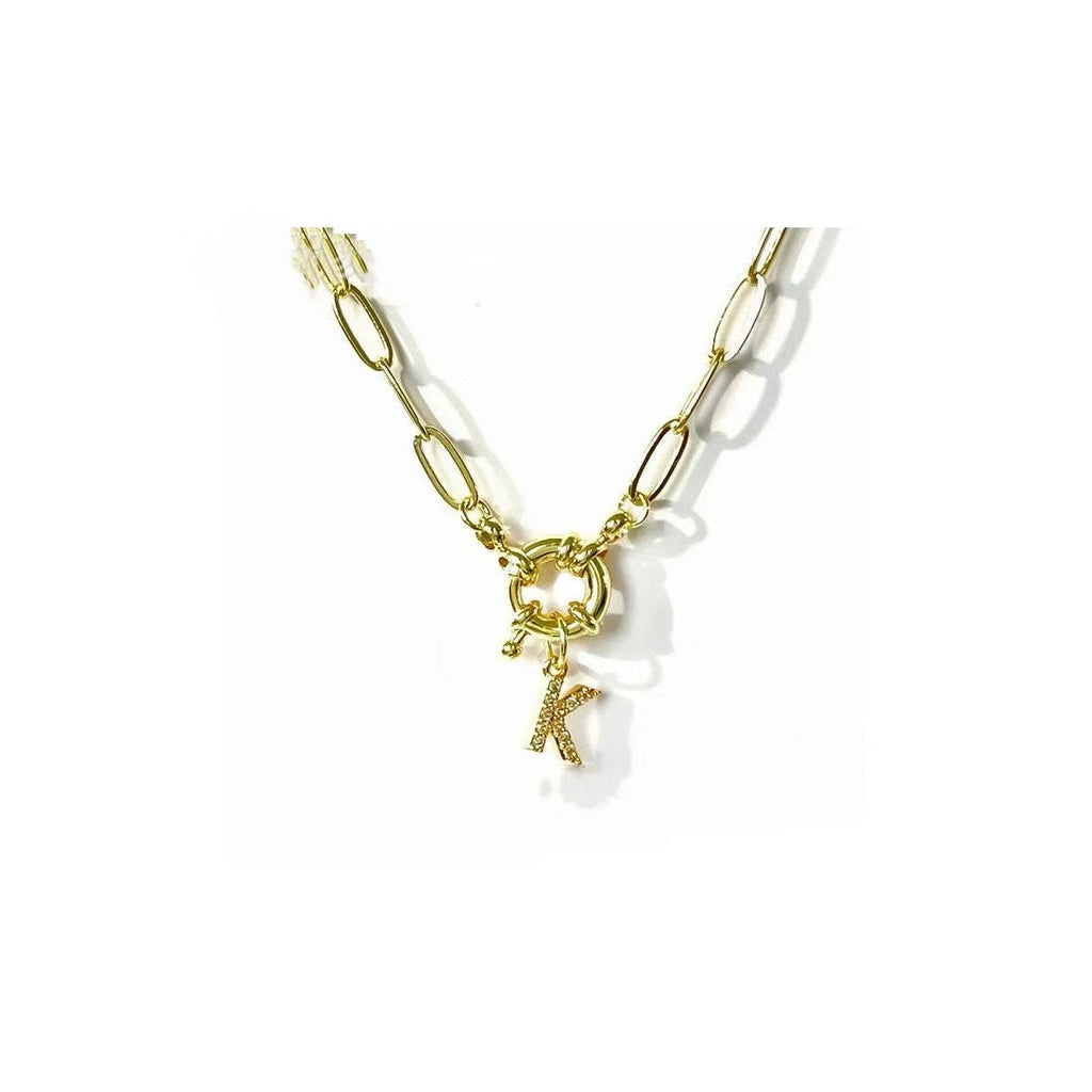 18K Stainless Steel Rhinestone Initial Necklace on a Link Chain is crafted from high-quality stainless steel with an 18K gold finish, this necklace is tarnish-free and designed for everyday wear. The sparkling rhinestone initial pendant adds a touch of elegance, while the charm clasp allows you to customize the piece by adding more charms for a unique, personalized touch.