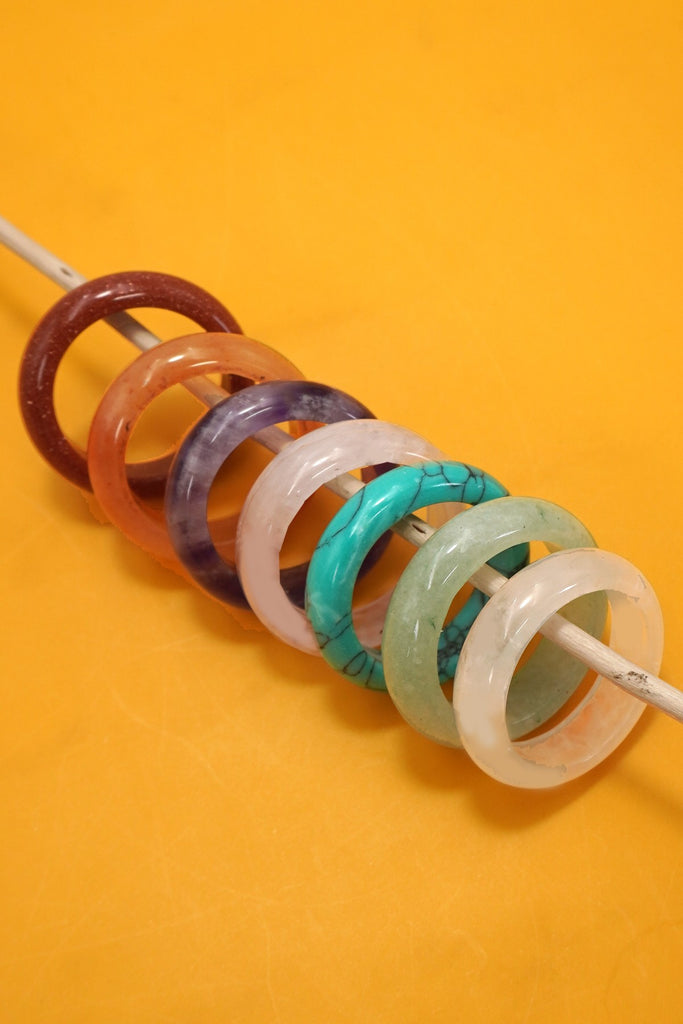 Earthy elegance to your style with these natural stone rings. Each ring is crafted with genuine stone beads in a variety of vibrant tones, offering a unique pop of color and organic charm, Boho-inspired looks.