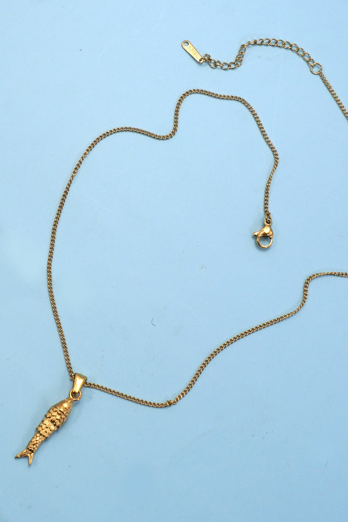 18K Stainless Steel Tarnish-Free Fish Necklace, sea life trends with the inspiration of Christian faith. Crafted from high-quality stainless steel with an 18K gold finish, this necklace is designed to resist tarnish and maintain its shine. The fish symbol, representing both oceanic beauty and deep spiritual significance.