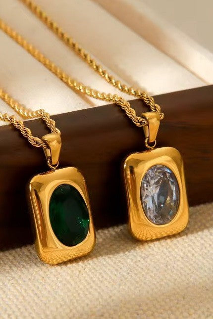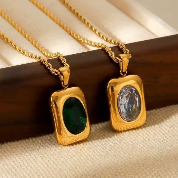 18K Stainless Steel Tarnish-Free Zircon Rhinestone Necklace, Rectangle Rhinestone Crystal or Lt rose on twisted chain necklace. Crafted from high-quality stainless steel with an 18K gold finish, this necklace is designed to resist tarnish and maintain its shine.