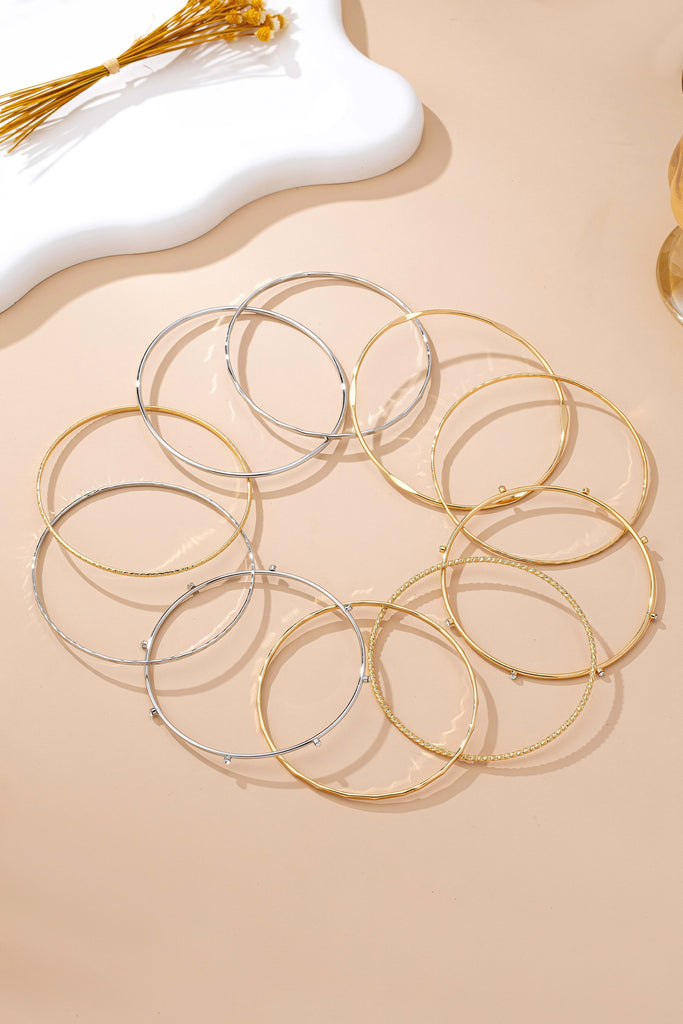 Gold Silver Rhinestone Textured Multi Bangle Set | 80B1612
