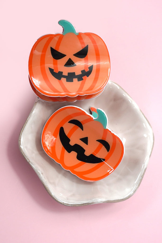 Halloween Pumpkin Hair Claw Clips. These adorable clips feature vibrant pumpkin designs, perfect for adding a touch of Halloween charm to your hairstyle. Ideal for securing hair while celebrating the spooky season, they combine practicality with playful holiday flair.