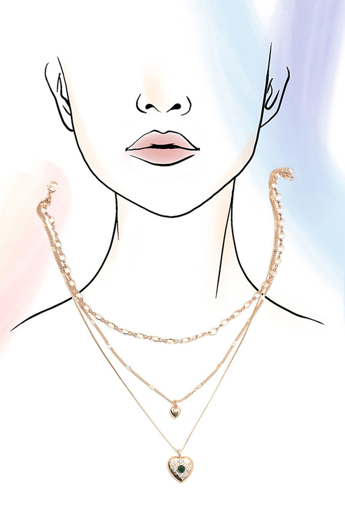 MULTI LAYER SET GEM STONE HEART PENDANT NECKLACE | 25N977