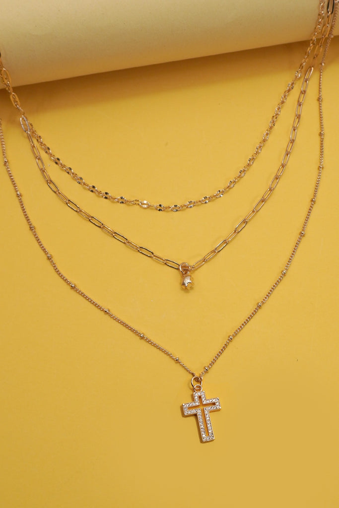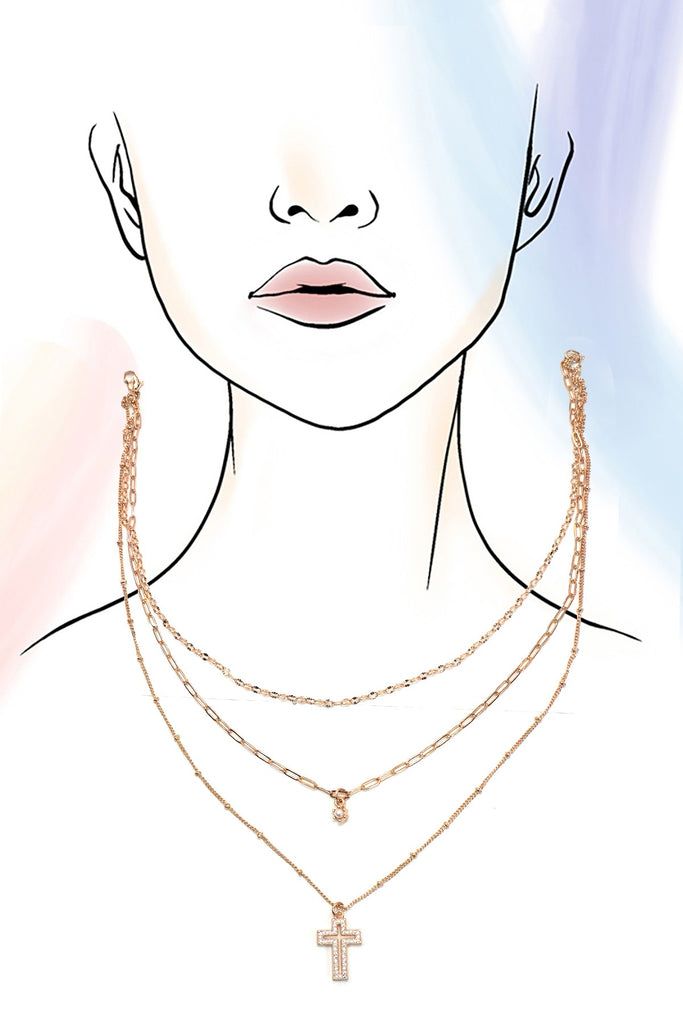 MULTI LAYER SET RHINESTONE CROSS PENDANT NECKLACE | 25N974