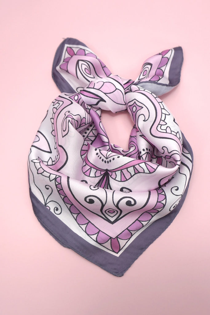 Traditional Print Silky Feel Bandana Scarf, made from luxurious silky-feel fabric, this bandana scarf features a traditional vintage floral aztec print design, bringing a feminine vibe to your look. Whether you wear it as a headband, neck scarf, wrist wrap, or tie.