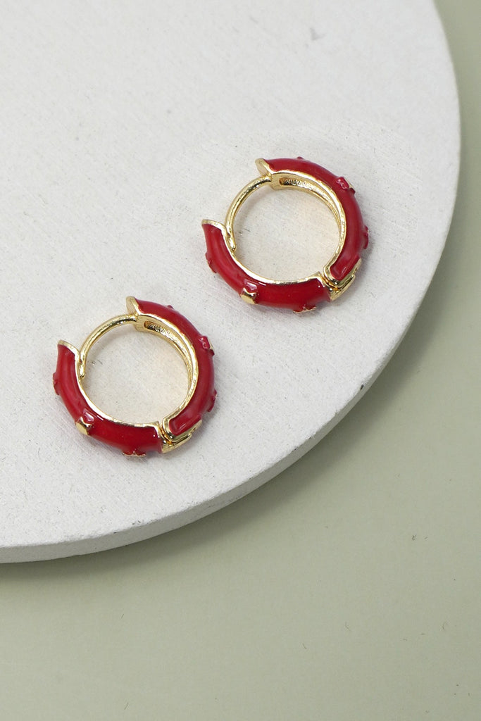 Stunning fusion of artistry and heritage. Handcrafted using the ancient cloisonne technique, these huggie hoops feature delicate star patterns in rich, natural enamel tones. Perfect gift for the holidays, including Christmas, Mother's Day, Valentine's Day.