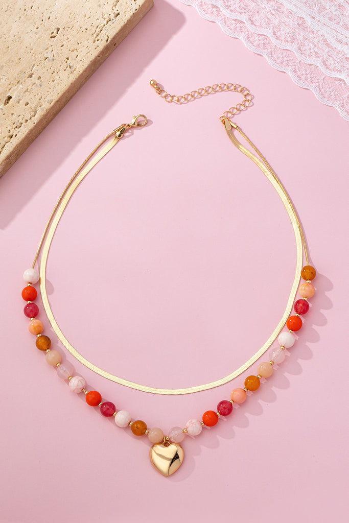 Multi Layered Beaded Heart Charm Necklace | 80N92705