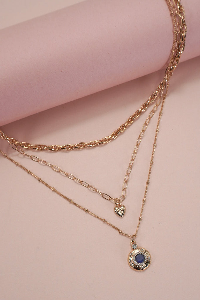 MULTI LAYER SET HEART SHPPHIRE PENDANT NECKLACE | 25N929