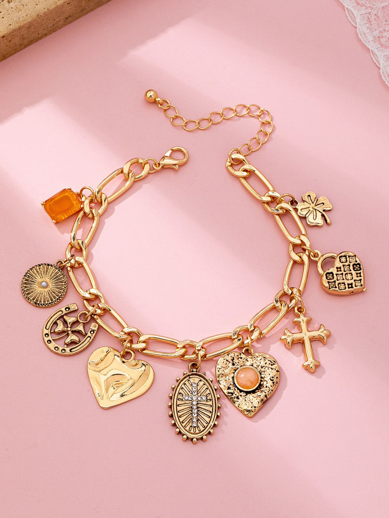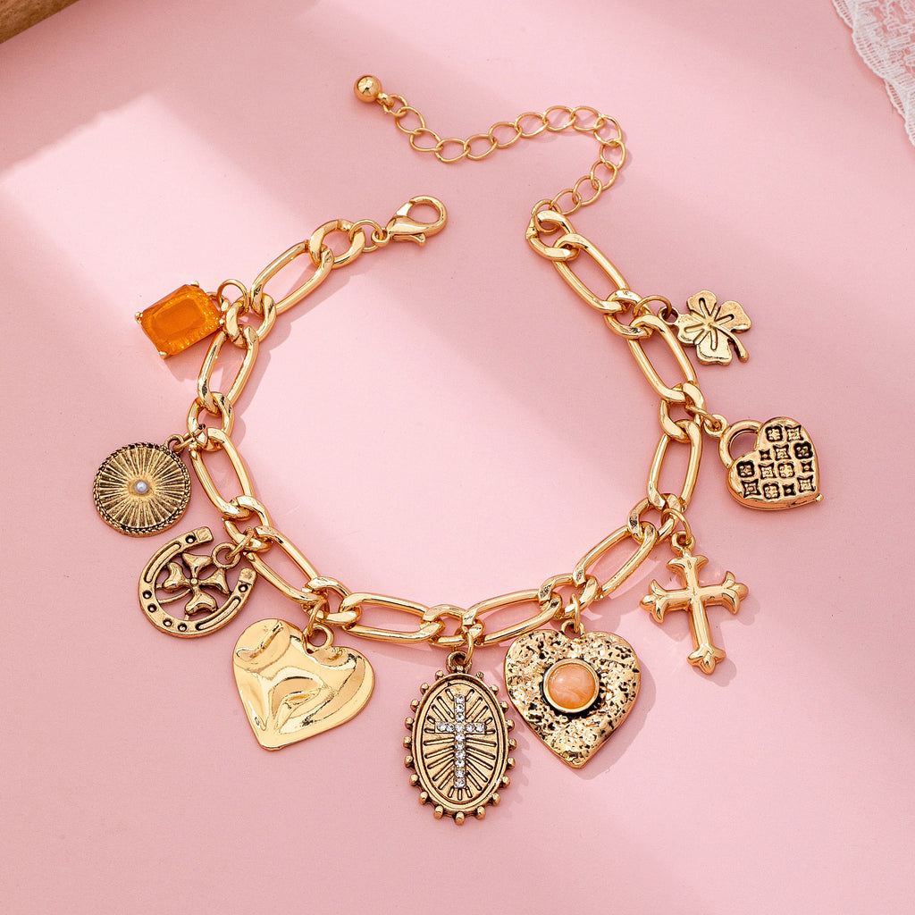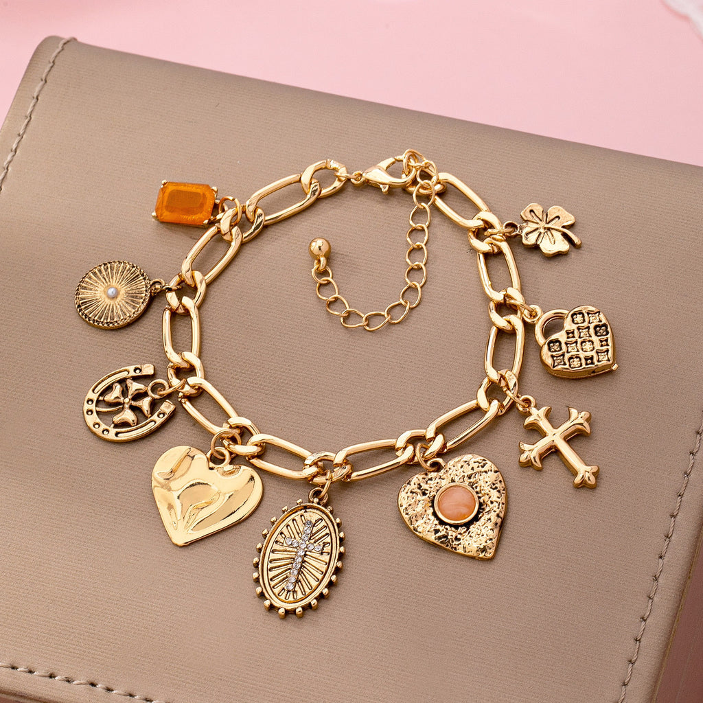 Charm Bracelet-Cross Heart Oval Motifs | 80B1651
