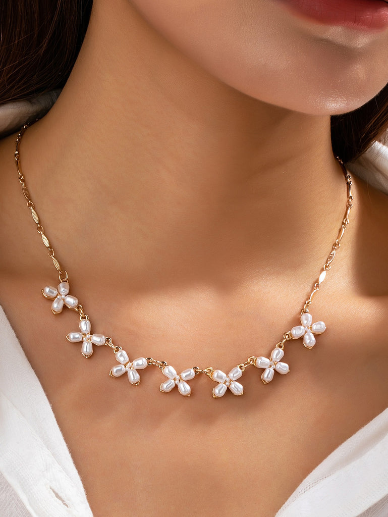 Charm Necklace-Delicate Pearl Flower | 80N92821
