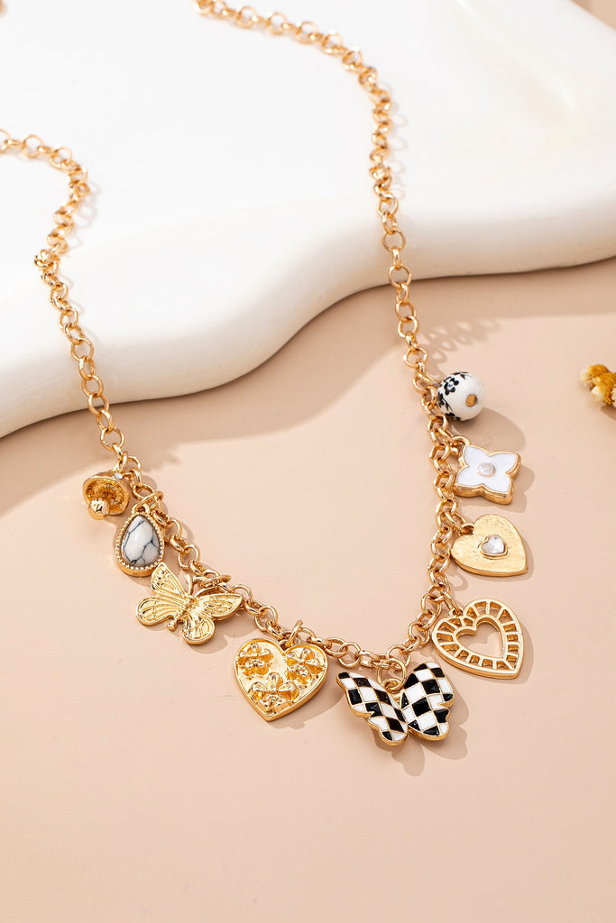 Charm Necklace-Hearts & Checker Butterflies | 80N92815