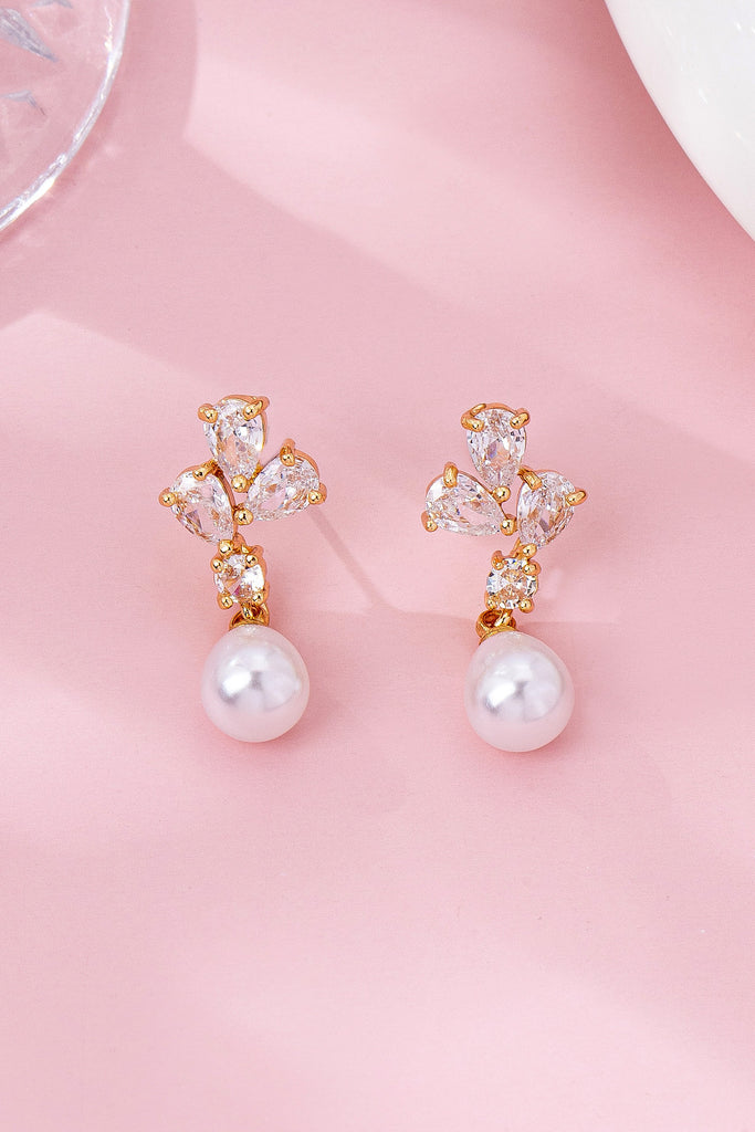 CZ Crystal Cluster & Teardrop Pearl Earrings | 80E61988
