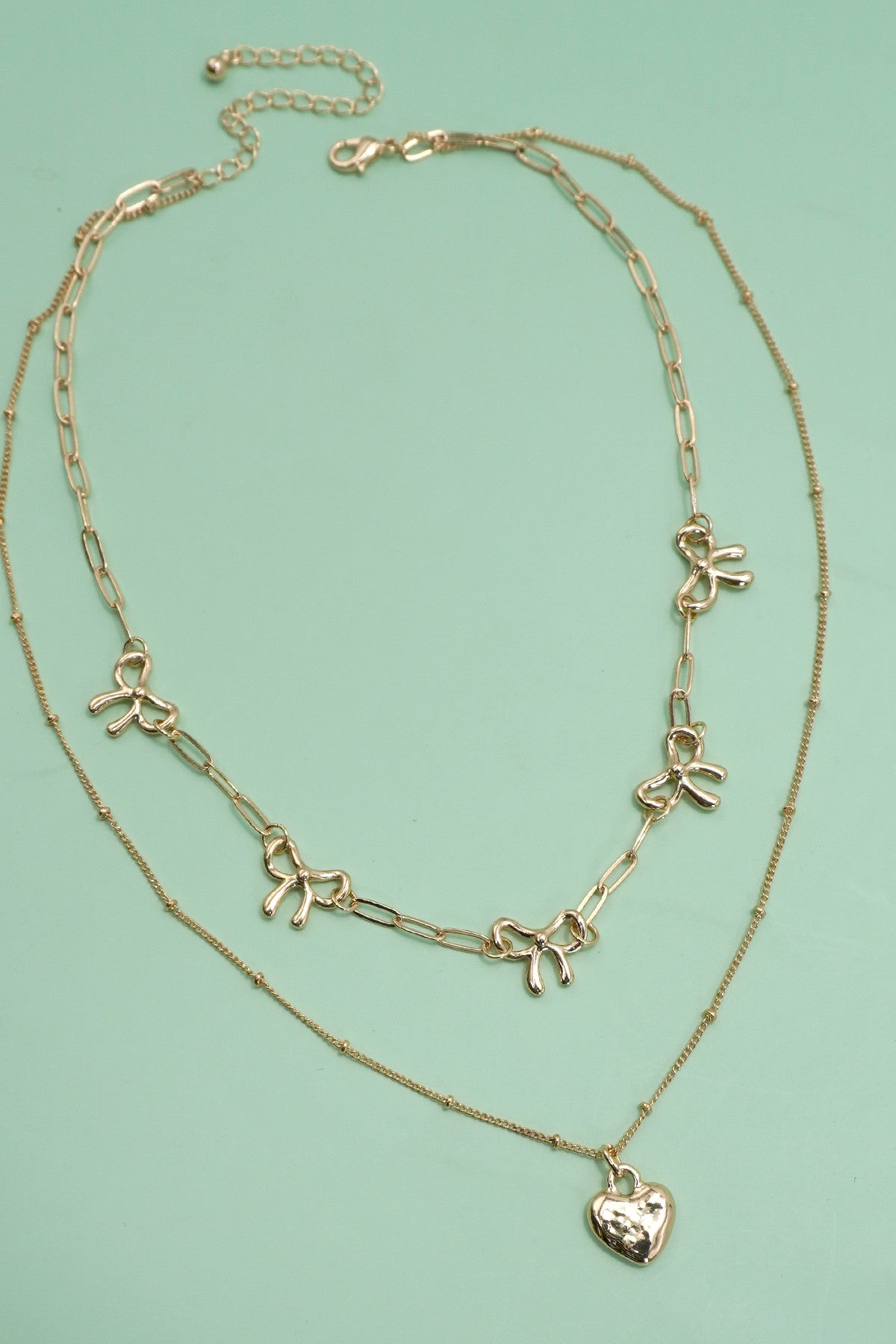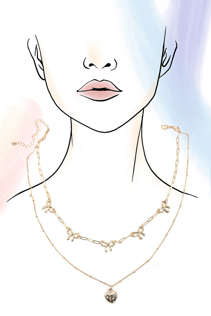 DOUBLE LAYER MULTI BOW WITH HEART CHARM NECKLACE | 80N91660