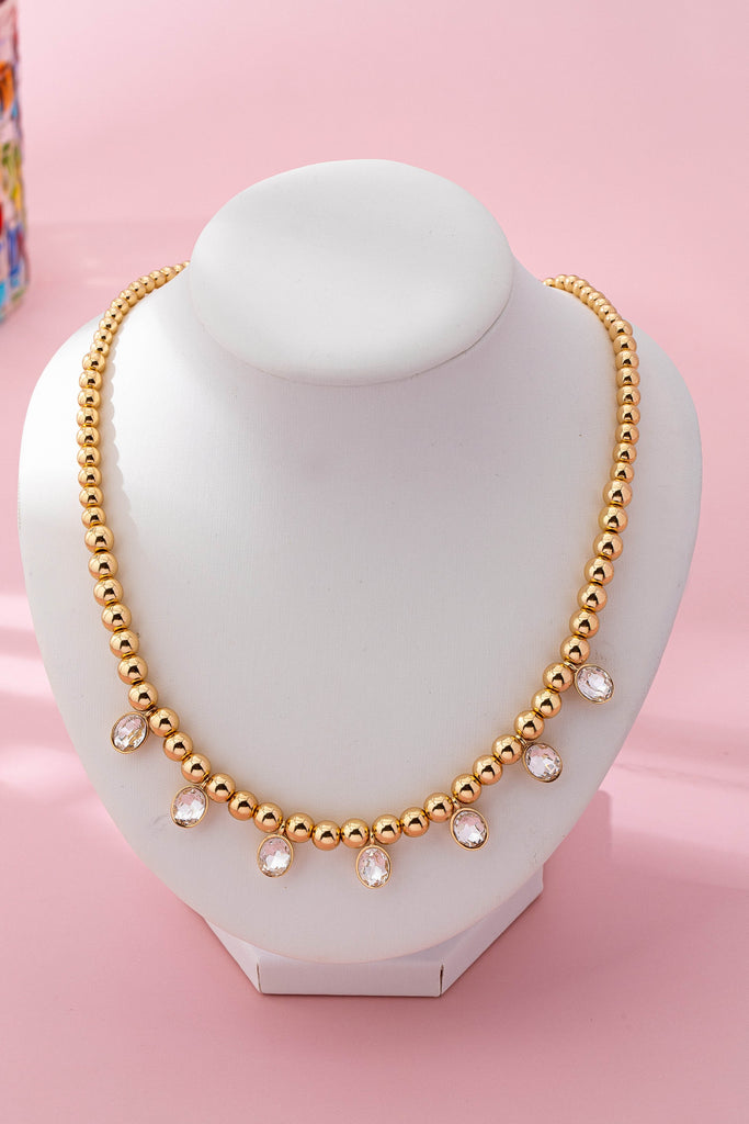 Oval Stone Beaded Ball Chain necklace | 80N92776